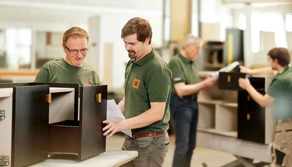 Jeder unserer Mitarbeitenden bringt seine individuellen Talente, seine Erfahrung und seinen Innovationsgeist in unsere Projekte ein. Schreiner:innen, Holztechniker:innen, Ingenieur:innen und Innenarchitekt:innen arbeiten bei uns Hand in Hand. Auf kurzen Wegen. Service- und lösungsorientiert.